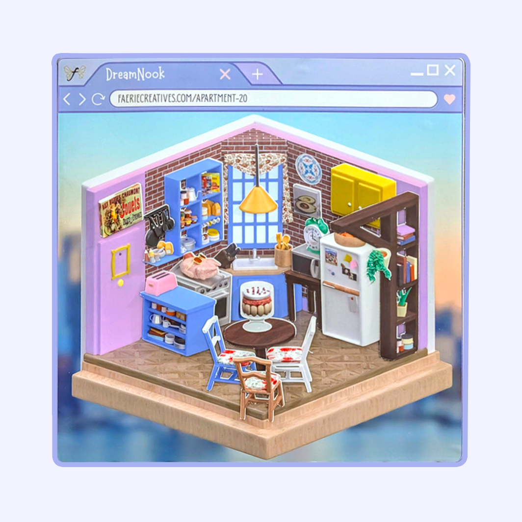 Capturing the soul of a beloved New York nook from the retro cabinets to the mismatched chairs. From lavender walls to legendary leftovers, this miniature kitchen is a love letter to laughter, friendship, and the quirks that make a house a home.